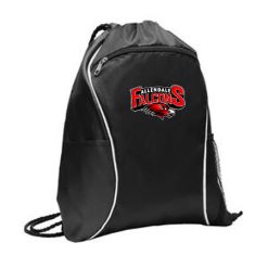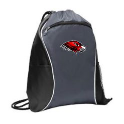 This spacious cinch pack is ready for any sport or activity. 210 denier polyester; Black drawcord closure; Front zippered pocket; Side mesh pocket; Side slip pocket; Dimensions: 16″h x 13″w