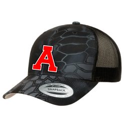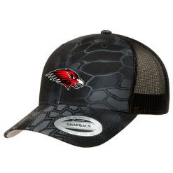 65% polyester / 35% cotton, Hard buckram. Structured, Mid profile, 6 panel, Curved visor, 3 ½” crown