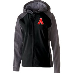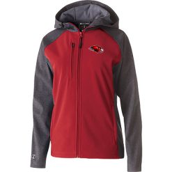 Lightweight, soft shell outer fabric in 96% polyester, 4% spandex bonded to brushed back polyester; Sleeves, hood and panels have Tech Print pattern detail; Ladies’ fit; Woven label; Front zipper; Adjustable hood with drawcord on Ladies’ S-2XL only; Dual front chest zippered pocket; Dual inside pockets; Internal storm cuffs for weather protection; Front zippered pockets; Open bottom with adjustable elastic hidden drawcord; Dropped tail