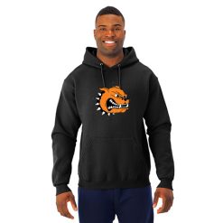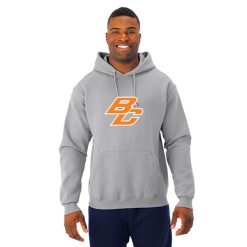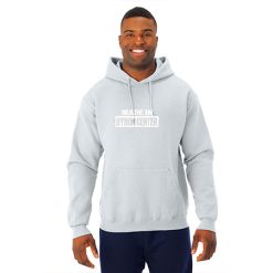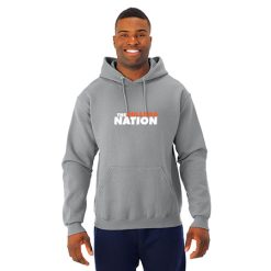 8.0 oz., 50% cotton / 50% polyester NuBlend® pre-shrunk fleece ;8.0 oz., 49% cotton / 51% polyester (Oxford); Made with USA grown cotton; NuBlend® pill-resistant fleece; High stitch density for a smooth printing canvas; Tear away label; 2-ply hood with grommets; Matching tipped and knotted drawcord; Front pouch pocket; Two-needle coverstitching on neck, armholes and waistband; 1 x 1 rib cuffs and waistband; Quarter-turned to eliminate center crease
