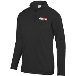 Wicks moisture; Tear away label; Quarter zip pullover style; Set-in sleeves; Open bottom