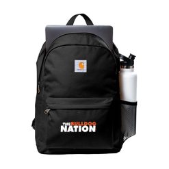 This no-nonsense pack is built for everyday hauling. Made of canvas with a water-shedding coating, it can easily handle any work or school commute. ; 500D polyester; Rain Defender® durable water repellent (DWR); Large main compartment with elastic pocket; Front zippered pocket with 2 mesh pockets and key fob; Mesh side pocket; Padded shoulder straps for comfort; Carhartt label sewn on front; Dimensions: 17.5″h x 12″w x 6″l; Note: Bags not intended for use by children 12 and under.