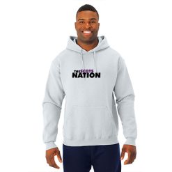 8.0 oz., 50% cotton / 50% polyester NuBlend® pre-shrunk fleece ;8.0 oz., 49% cotton / 51% polyester (Oxford); Made with USA grown cotton; NuBlend® pill-resistant fleece; High stitch density for a smooth printing canvas; Tear away label; 2-ply hood with grommets; Matching tipped and knotted drawcord; Front pouch pocket; Two-needle coverstitching on neck, armholes and waistband; 1 x 1 rib cuffs and waistband; Quarter-turned to eliminate center crease