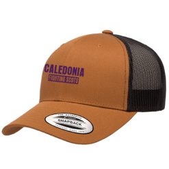 65% polyester / 35% cotton, Hard buckram. Structured, Mid profile, 6 panel, Curved visor, 3 ½” crown