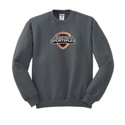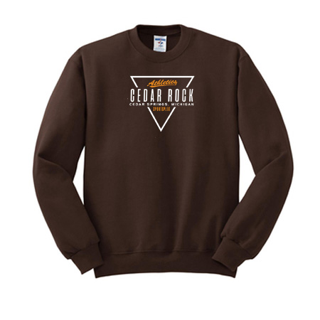 8-ounce, 50/50 cotton/poly NuBlend® pill-resistant fleece; High-stitch density for a smooth-printing canvas; Coverseamed neck, armholes and waistband; 1×1 rib knit collar, cuffs and waistband with spandex