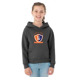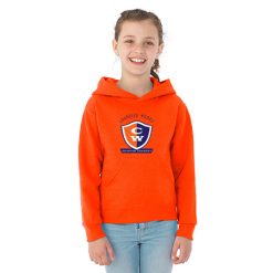 8.0 oz., 50% cotton / 50% polyester NuBlend® pre-shrunk fleece; 8.0 oz., 49% cotton / 51% polyester (Oxford); Made with USA grown cotton; NuBlend® pill-resistant fleece; High stitch density for a smooth printing canvas; Tear away label ;2-ply hood ;Front pouch pocket ;Two-needle coverstitching on neck, armholes and waistband; 1 x 1 rib cuffs and waistband; Quarter-turned to eliminate center crease; CPSIA compliant: all JERZEES® youth products and packaging comply with the tracking label requirements of the Consumer Product Safety Improvement Act