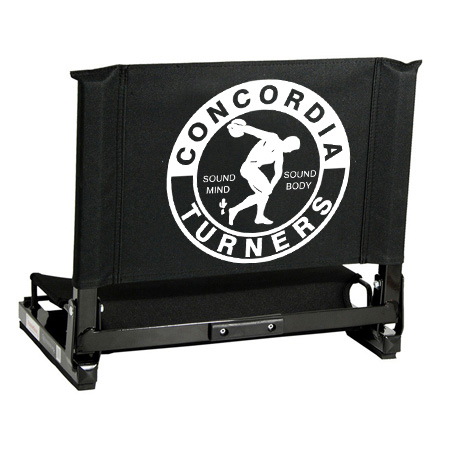 The GameChanger™ fits virtually any metal or wooden bleacher. Bottom hook secures to bleacher; rubber non-slip skids. Folds neatly; attached tote handle for easy carry.
