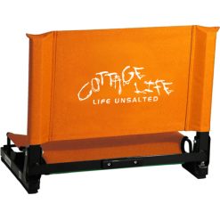 The GameChanger™ fits virtually any metal or wooden bleacher. Bottom hook secures to bleacher; rubber non-slip skids. Folds neatly; attached tote handle for easy carry.