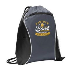 This spacious cinch pack is ready for any sport or activity. 210 denier polyester; Black drawcord closure; Front zippered pocket; Side mesh pocket; Side slip pocket; Dimensions: 16″h x 13″w