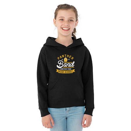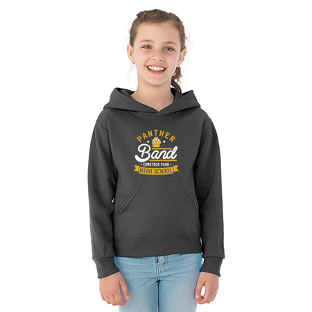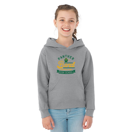 8.0 oz., 50% cotton / 50% polyester NuBlend® pre-shrunk fleece; 8.0 oz., 49% cotton / 51% polyester (Oxford); Made with USA grown cotton; NuBlend® pill-resistant fleece; High stitch density for a smooth printing canvas; Tear away label ;2-ply hood ;Front pouch pocket ;Two-needle coverstitching on neck, armholes and waistband; 1 x 1 rib cuffs and waistband; Quarter-turned to eliminate center crease; CPSIA compliant: all JERZEES® youth products and packaging comply with the tracking label requirements of the Consumer Product Safety Improvement Act
