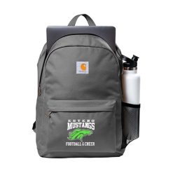 This no-nonsense pack is built for everyday hauling. Made of canvas with a water-shedding coating, it can easily handle any work or school commute. ; 500D polyester; Rain Defender® durable water repellent (DWR); Large main compartment with elastic pocket; Front zippered pocket with 2 mesh pockets and key fob; Mesh side pocket; Padded shoulder straps for comfort; Carhartt label sewn on front; Dimensions: 17.5″h x 12″w x 6″l; Note: Bags not intended for use by children 12 and under.
