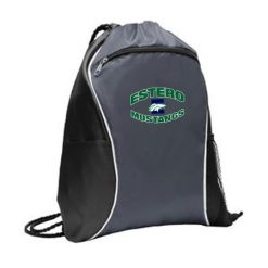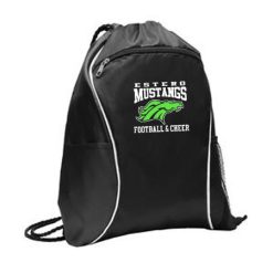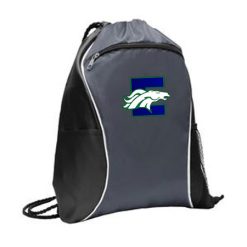 This spacious cinch pack is ready for any sport or activity. 210 denier polyester; Black drawcord closure; Front zippered pocket; Side mesh pocket; Side slip pocket; Dimensions: 16″h x 13″w