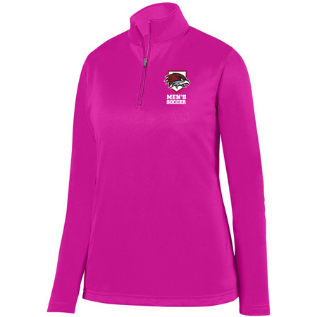 100% polyester performance wicking fleece ™ Wicks moisture away from the body ™ Ladies fit ™ Tear away label ™ Quarter zip pullover style ™ Set-in sleeves ™ Open bottom