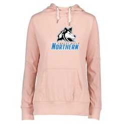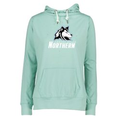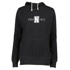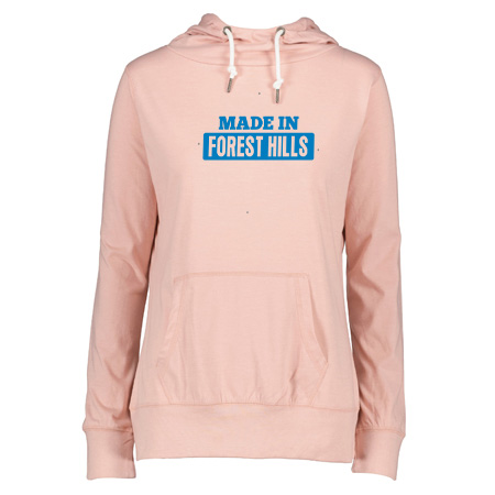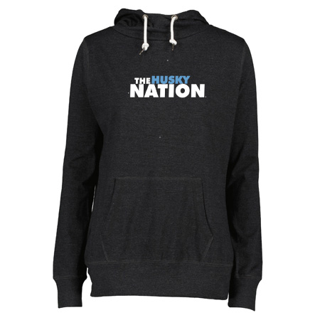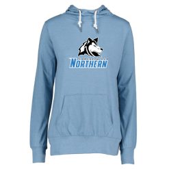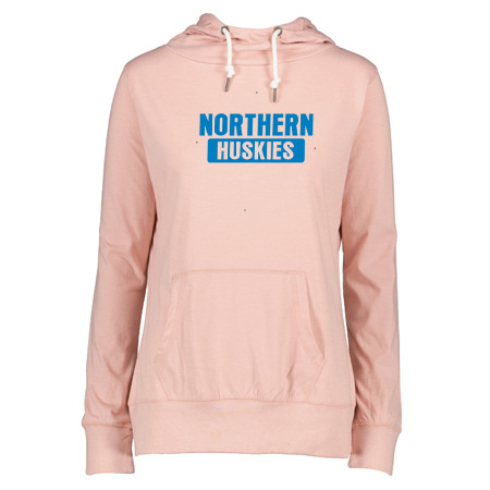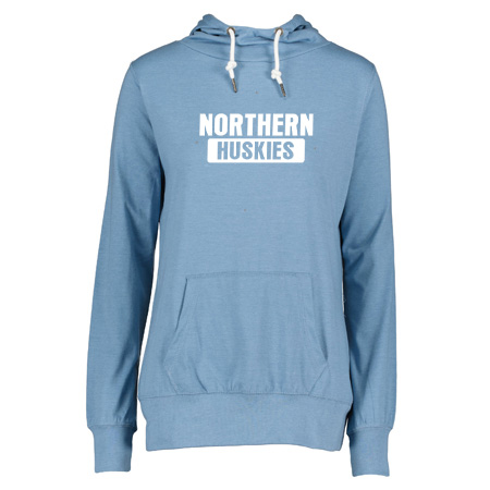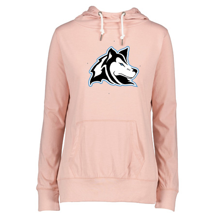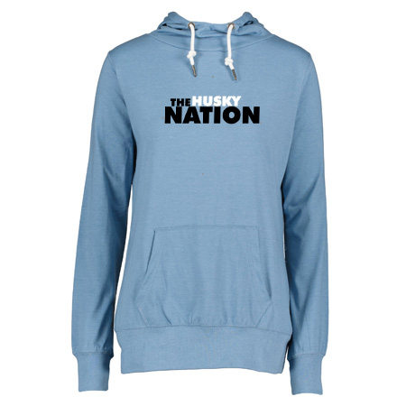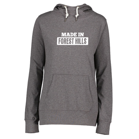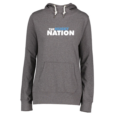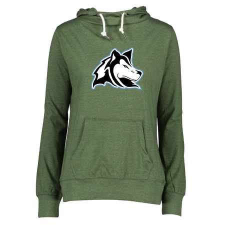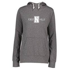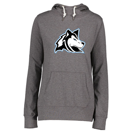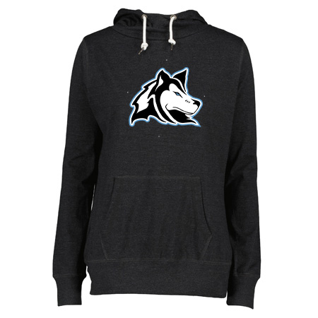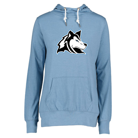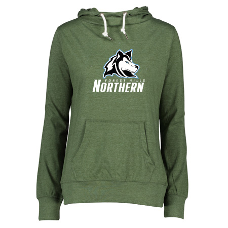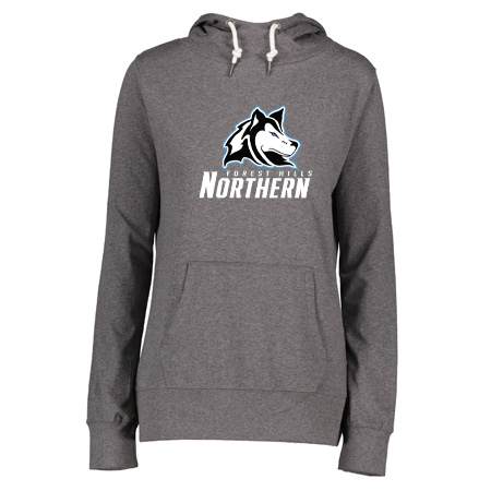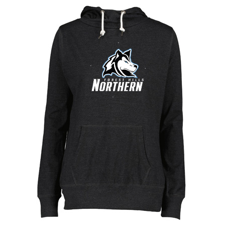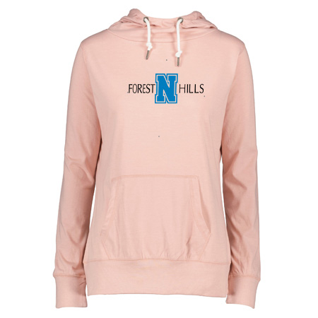 5.6 oz., 55% cotton / 45% polyester, heathered jersey, Funnel neck with hood and corded drawstring, Relaxed silhouette