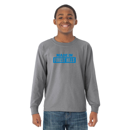 5.4 oz., 50% cotton / 50% polyester pre-shrunk jersey; 5.4 oz., 47% cotton / 53% polyester (Oxford); Made with USA grown cotton; Moisture wicking; Tear-away label; 1 x 1 rib collar with two-needle coverstitching on front neck; Shoulder-to-shoulder taping; 1 x 1 rib cuffs; Two-needle hemmed bottom; Quarter-turned to eliminate center crease; CPSIA compliant: all JERZEES® youth products and packaging comply with the tracking label requirements of the Consumer Product Safety Improvement Act
