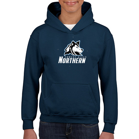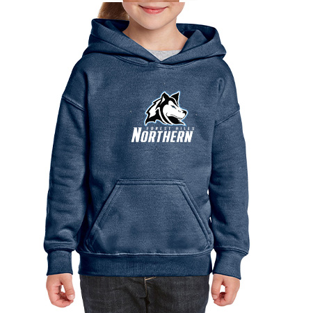 8.0 oz., 50% cotton / 50% polyester; 8.0 oz., 60% polyester / 40% cotton (Heather Sport Dark Navy); Double-lined hood; Double-needle stitching at shoulder, armholes, neck, waistband and cuffs; Pouch pocket; 1 x 1 rib with spandex; Air jet yarn for softer feel and reduced pilling; Tear away label; CPSIA Tracking Label Compliant