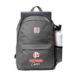 This no-nonsense pack is built for everyday hauling. Made of canvas with a water-shedding coating, it can easily handle any work or school commute. ; 500D polyester; Rain Defender® durable water repellent (DWR); Large main compartment with elastic pocket; Front zippered pocket with 2 mesh pockets and key fob; Mesh side pocket; Padded shoulder straps for comfort; Carhartt label sewn on front; Dimensions: 17.5″h x 12″w x 6″l; Note: Bags not intended for use by children 12 and under.