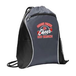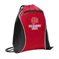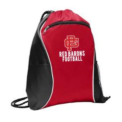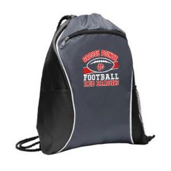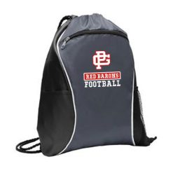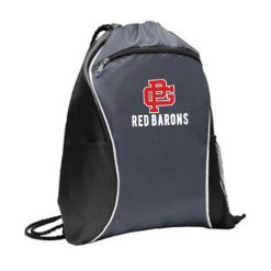 This spacious cinch pack is ready for any sport or activity. 210 denier polyester; Black drawcord closure; Front zippered pocket; Side mesh pocket; Side slip pocket; Dimensions: 16″h x 13″w