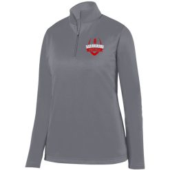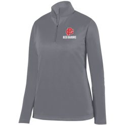 100% polyester performance wicking fleece ™ Wicks moisture away from the body ™ Ladies fit ™ Tear away label ™ Quarter zip pullover style ™ Set-in sleeves ™ Open bottom