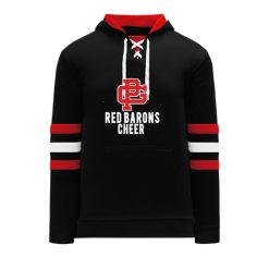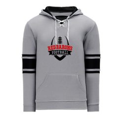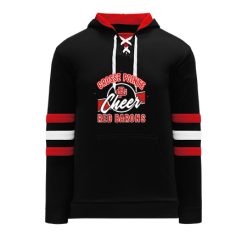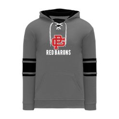Polyfleece, rib knit fabrics. Features skate lace neck hood.