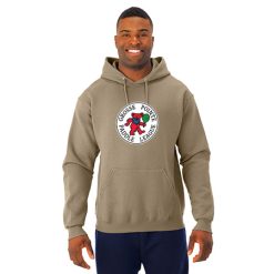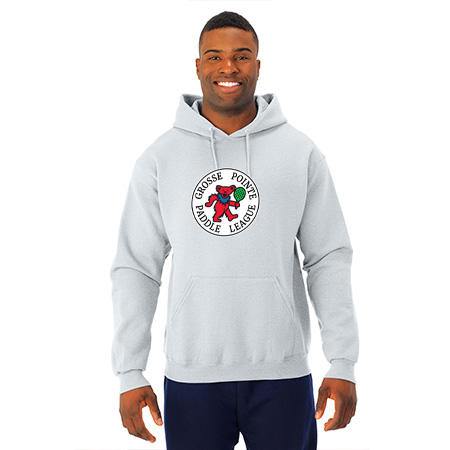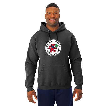 8.0 oz., 50% cotton / 50% polyester NuBlend® pre-shrunk fleece ;8.0 oz., 49% cotton / 51% polyester (Oxford); Made with USA grown cotton; NuBlend® pill-resistant fleece; High stitch density for a smooth printing canvas; Tear away label; 2-ply hood with grommets; Matching tipped and knotted drawcord; Front pouch pocket; Two-needle coverstitching on neck, armholes and waistband; 1 x 1 rib cuffs and waistband; Quarter-turned to eliminate center crease