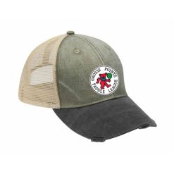 100% cotton front panel & visor / 100% nylon mesh back panels