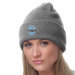 100% acrylic knit cuff cap; Approx. 12 1/2″ long; Made in the USA; Front imprint area: 3″H x 4″W