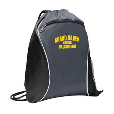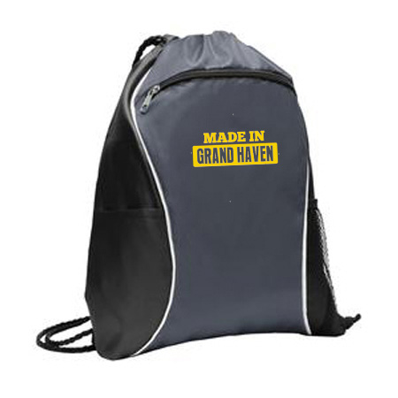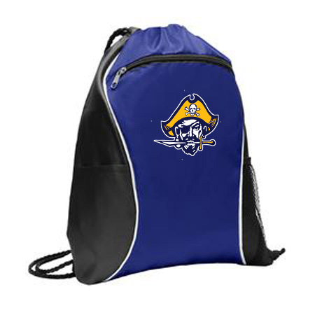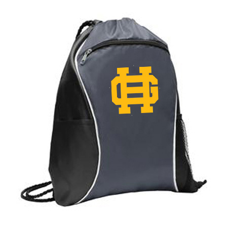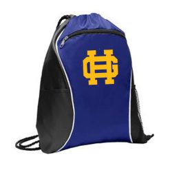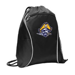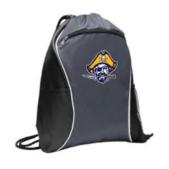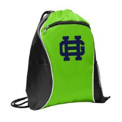 This spacious cinch pack is ready for any sport or activity. 210 denier polyester; Black drawcord closure; Front zippered pocket; Side mesh pocket; Side slip pocket; Dimensions: 16″h x 13″w