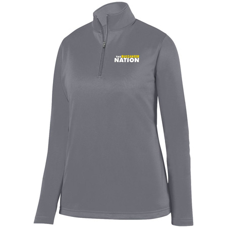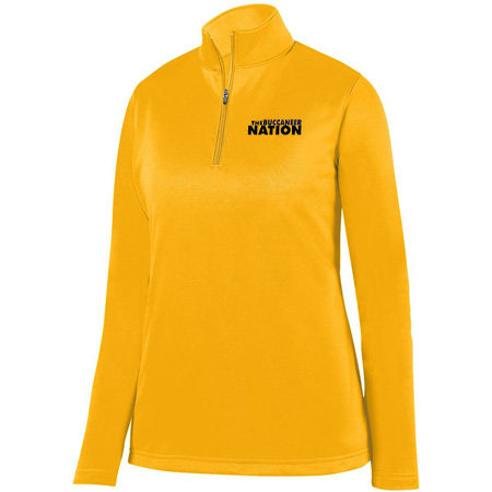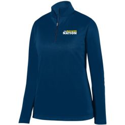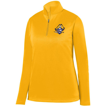 100% polyester performance wicking fleece ™ Wicks moisture away from the body ™ Ladies fit ™ Tear away label ™ Quarter zip pullover style ™ Set-in sleeves ™ Open bottom