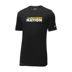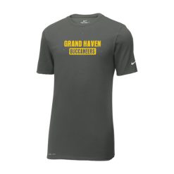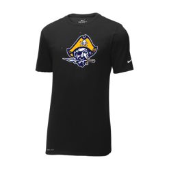 This Nike performance tee features sweat-wicking fabric to help keep you dry and comfortable. Durable rib knit crew neck. Heat transfer label for tag-free comfort. Double-needle stitching throughout. Contrast heat transfer Swoosh design trademark on left sleeve. Contrast heat transfer Dri-FIT logo at right hem. Made of 4.7-ounce, 60/40 cotton/poly Dri-FIT fabric.