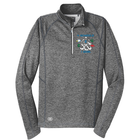 LAYERABLE WARMTH; STRETCH; REFLECTIVE DETAILS; 6.2-ounce, 100% poly heather; Interior textured fleece; Reflective OGIO Endurance heat transfer label for tag-free comfort; Zip-through cadet collar with reflective taping and clear silicone zipper pull; Reflective O heat transfer at back neck; Set-in sleeves with shaped cuffs; Slight drop tail hem with Endurance heat transfer at back left panel; Reflective O heat transfer at front right hem