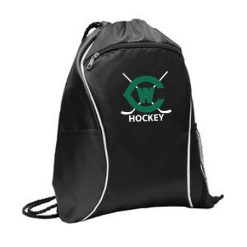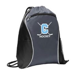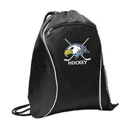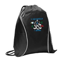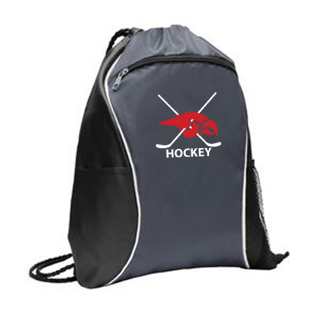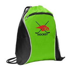 This spacious cinch pack is ready for any sport or activity. 210 denier polyester; Black drawcord closure; Front zippered pocket; Side mesh pocket; Side slip pocket; Dimensions: 16″h x 13″w