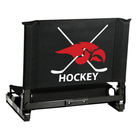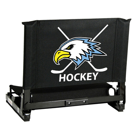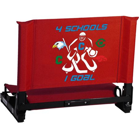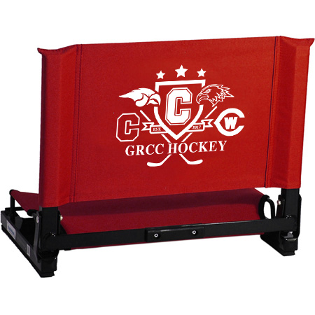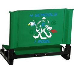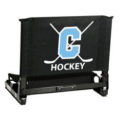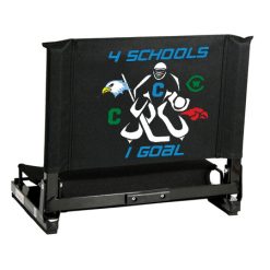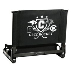 The GameChanger™ fits virtually any metal or wooden bleacher. Bottom hook secures to bleacher; rubber non-slip skids. Folds neatly; attached tote handle for easy carry.