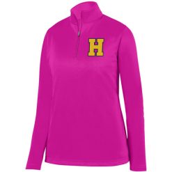 100% polyester performance wicking fleece ™ Wicks moisture away from the body ™ Ladies fit ™ Tear away label ™ Quarter zip pullover style ™ Set-in sleeves ™ Open bottom