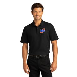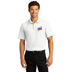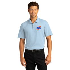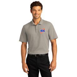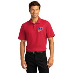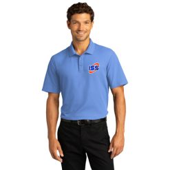 5-ounce, 65/35 poly/cotton pique; Stain release; Snag-resistant; Easy care; Flat knit collar; Tag-free label; 3-button placket; Dyed-to-match buttons