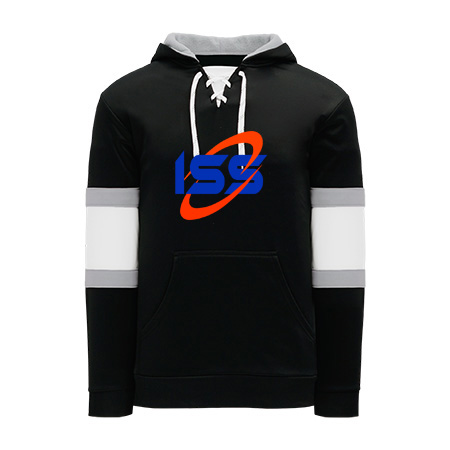 Polyfleece, rib knit fabrics. Features skate lace neck hood.