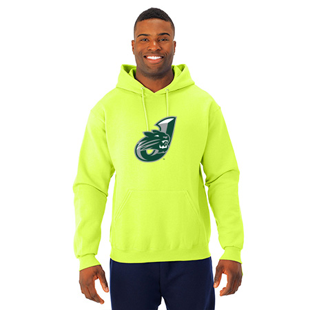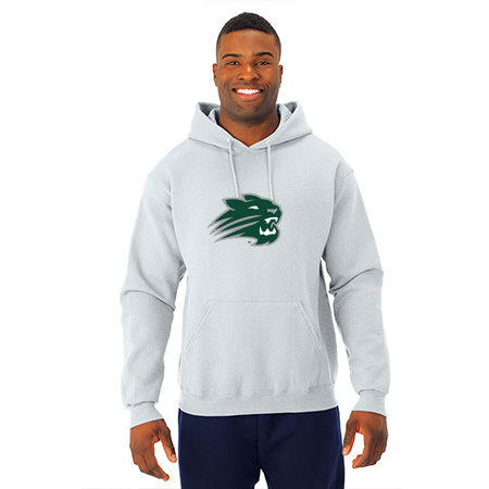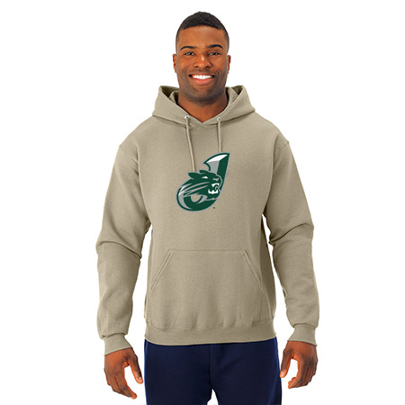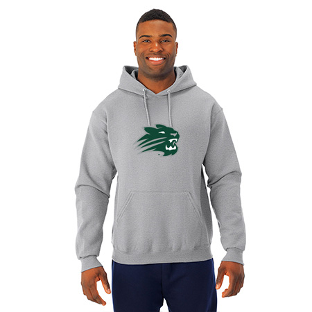 8.0 oz., 50% cotton / 50% polyester NuBlend® pre-shrunk fleece ;8.0 oz., 49% cotton / 51% polyester (Oxford); Made with USA grown cotton; NuBlend® pill-resistant fleece; High stitch density for a smooth printing canvas; Tear away label; 2-ply hood with grommets; Matching tipped and knotted drawcord; Front pouch pocket; Two-needle coverstitching on neck, armholes and waistband; 1 x 1 rib cuffs and waistband; Quarter-turned to eliminate center crease