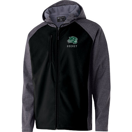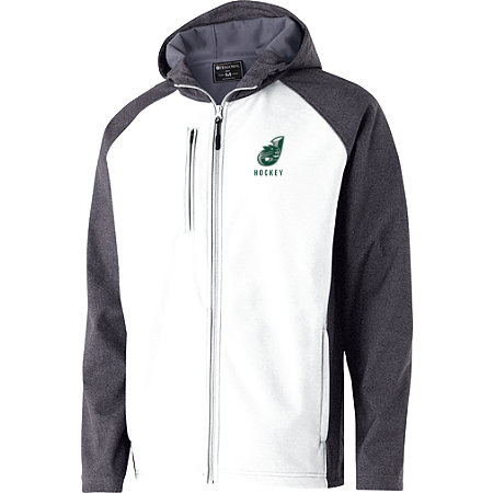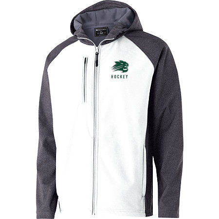 ightweight, soft shell outer fabric in 96% polyester, 4% spandex bonded to brushed back polyester. Sleeves, hood and panels have Tech Print pattern detail; Woven label; Front zipper; Adjustable hood with drawcord; Dual front chest zippered pocket; Dual inside pockets; Internal storm cuffs for weather protection; Front zippered pockets; Open bottom with adjustable elastic hidden drawcord; Dropped tail