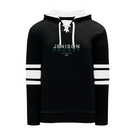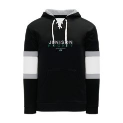 Polyfleece, rib knit fabrics. Features skate lace neck hood.