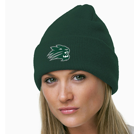 100% acrylic knit cuff cap; Approx. 12 1/2″ long; Made in the USA; Front imprint area: 3″H x 4″W