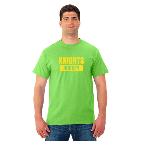 5.4 oz., 50% cotton / 50% polyester pre-shrunk jersey