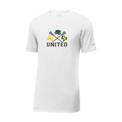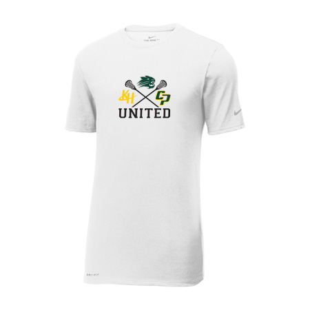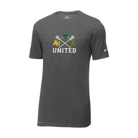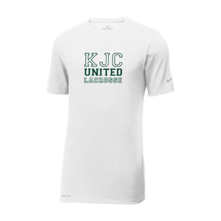 This Nike performance tee features sweat-wicking fabric to help keep you dry and comfortable. Durable rib knit crew neck. Heat transfer label for tag-free comfort. Double-needle stitching throughout. Contrast heat transfer Swoosh design trademark on left sleeve. Contrast heat transfer Dri-FIT logo at right hem. Made of 4.7-ounce, 60/40 cotton/poly Dri-FIT fabric.
