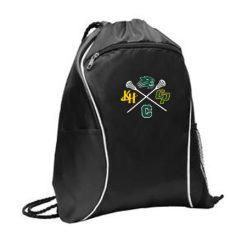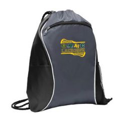 This spacious cinch pack is ready for any sport or activity. 210 denier polyester; Black drawcord closure; Front zippered pocket; Side mesh pocket; Side slip pocket; Dimensions: 16″h x 13″w