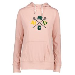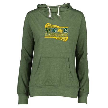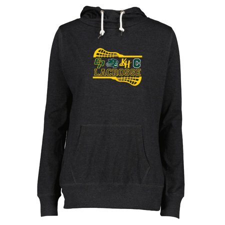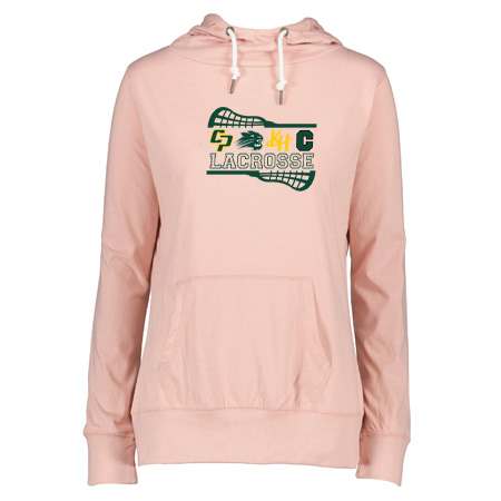 5.6 oz., 55% cotton / 45% polyester, heathered jersey, Funnel neck with hood and corded drawstring, Relaxed silhouette