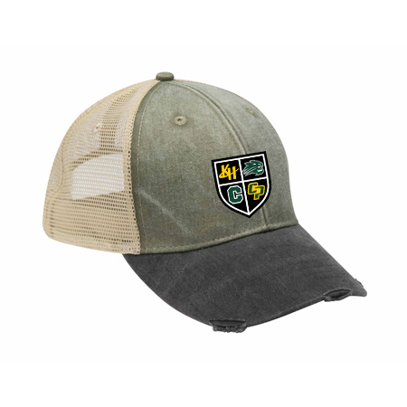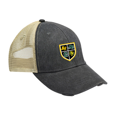 100% cotton front panel & visor / 100% nylon mesh back panels