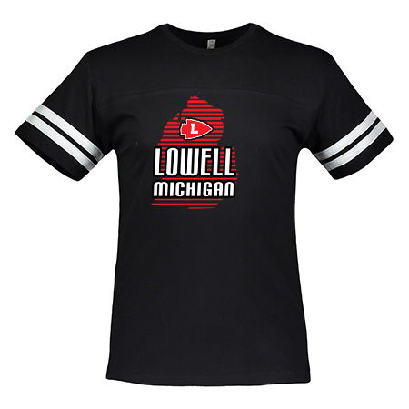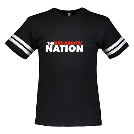 4.5 oz., 100% combed ringspun cotton fine jersey; 4.5 oz., 60% combed ringspun cotton / 40% polyester (CVC Colors); Ribbed collar; Shoulder-to-shoulder self-fabric back neck tape; Coverstitch front and back yoke; Contrast topstitched self-fabric stripes on sleeves; Side seam construction; EasyTear™ label; Fit: Adult Unisex – True to Size