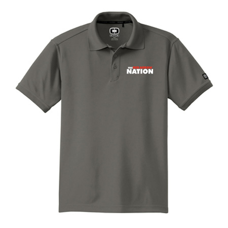 5-ounce, 100% poly pique with stay-cool wicking technology; Flat knit collar; 3-button placket with dyed-to-match buttons; Side vents