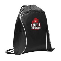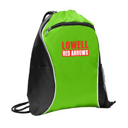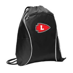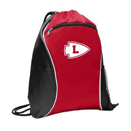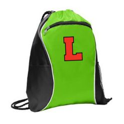 This spacious cinch pack is ready for any sport or activity. 210 denier polyester; Black drawcord closure; Front zippered pocket; Side mesh pocket; Side slip pocket; Dimensions: 16″h x 13″w