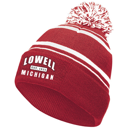 Keep cozy while cheering on your favorite team in the Homecoming Beanie. This striped knit beanie features a bicolor pom pom and a retro stocking cap design. With so many colors to choose from, you can show the world your team spirit in and outside of the stands.; Two layers of 100% acrylic knit; Two-color pom pom accent; Foldover cuff; Close-fitting; Stretches to fit most