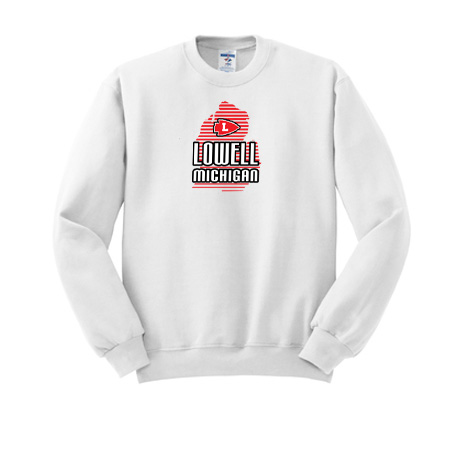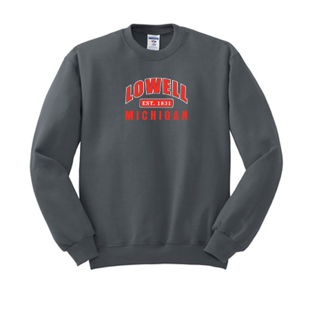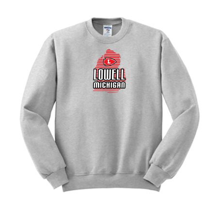 8-ounce, 50/50 cotton/poly NuBlend® pill-resistant fleece; High-stitch density for a smooth-printing canvas; Coverseamed neck, armholes and waistband; 1×1 rib knit collar, cuffs and waistband with spandex